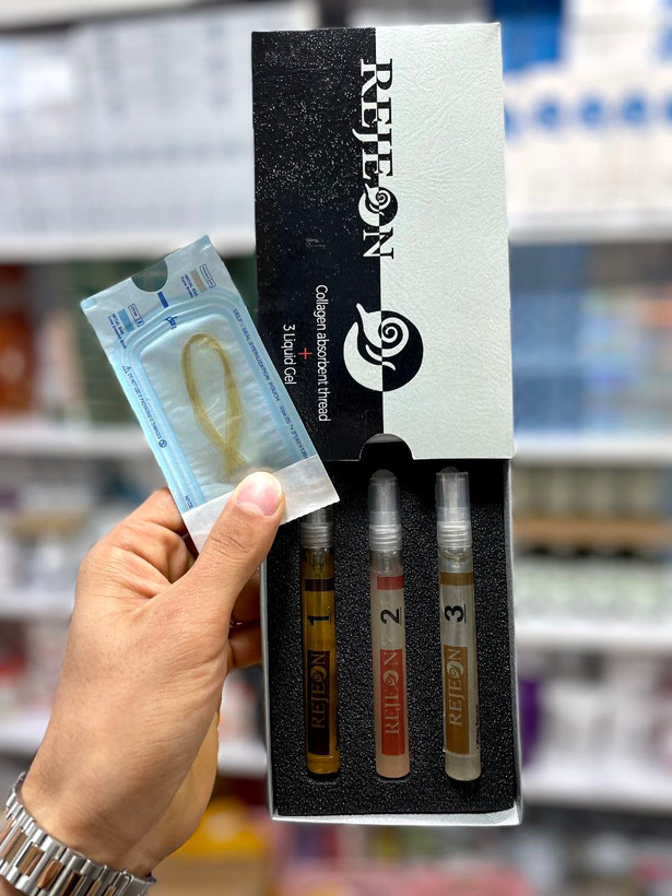 12عدد نخ کلاژن ۳ عدد سرم سرم شماره ۱ : پاک کننده و کلینزر سرم شماره ۲ : ژل حلزون + کمپلکس سرم شماره ۳ : سرم لیفتینگ: .