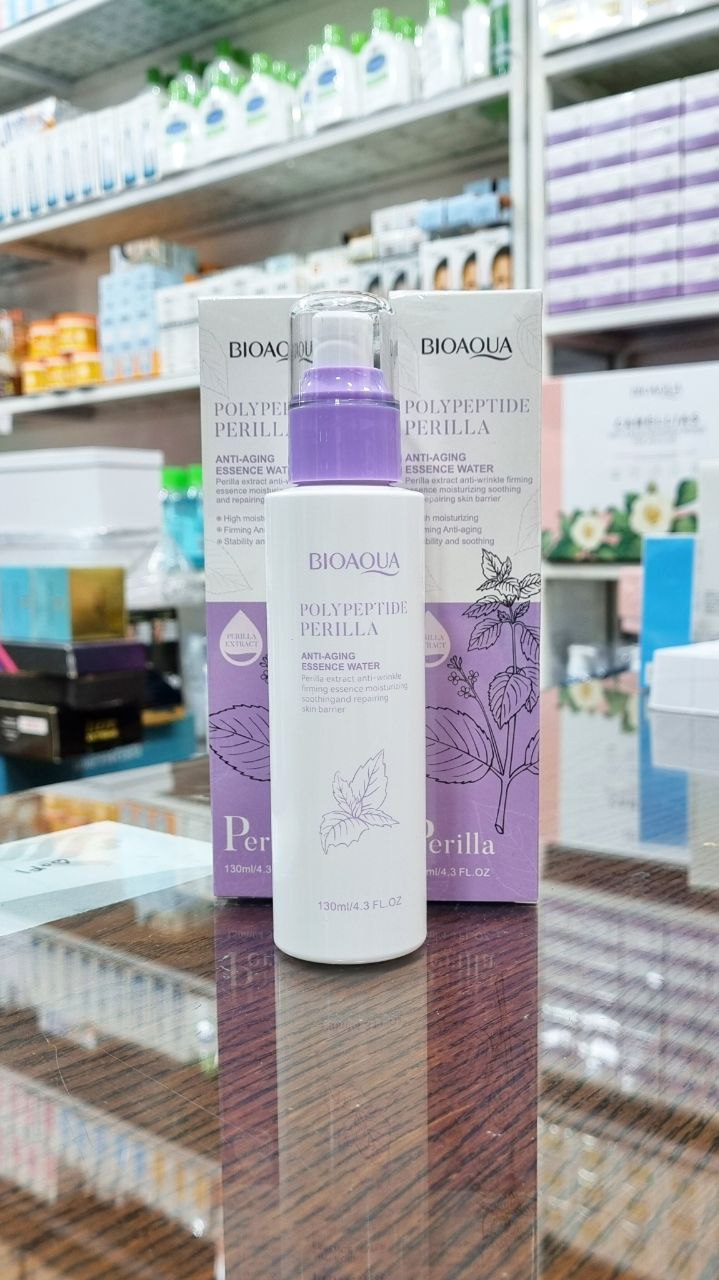 تونر تغذیه کننده پوست و ضد پیری پریلا پلی پپتاید بیوآکوا حاوی 3 ماده قدرتمند در جهت تغذیه و کاهش چین و چروک پوست است.