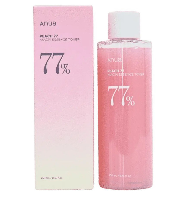 تونر اسنس هلو نیاسینامید آنوا Anua – Peach 77 Niacin Essence Toner یک تونر آبرسان و روشن کننده است که با 77% عصاره ی هلو فرموله شده است. این تونر به طور خاص برای بهبود بافت پوست و ایجاد پایه ای صاف و درخشان برای آرایش طراحی شده است. عصاره ی هلو به دلیل داشتن آنتی اکسیدان های قوی، به محافظت از پوست در برابر آسیب های محیطی کمک می کند و پوست را نرم و لطیف نگه می دارد. این تونر سلول های مرده پوست را لایه برداری می کند و منافذ را پاک می کند.