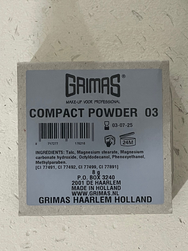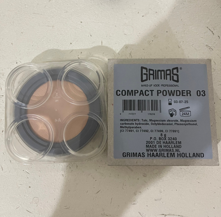 کامپکت پادر با پد مخملی گریماس به شکل ضربه ای و به صورت خشک استفاده می شود.