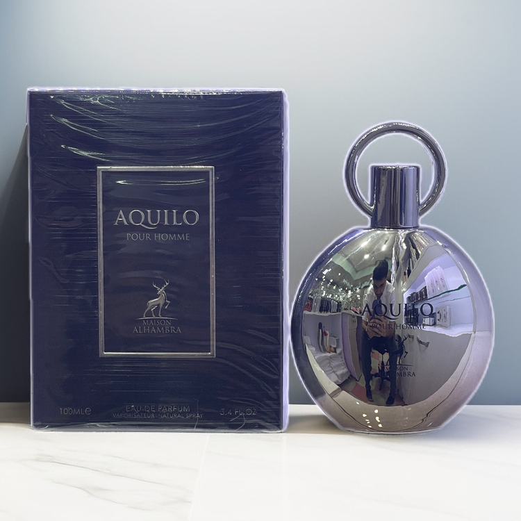 عطر ادکلن آکویلو پور هوم Aquilo pour homme الحمبرا عطری مردانه و شیک با رایحه ی خنک و تلخ است و مشابه و نمونه شرکتی ادکلن معروف بولگاری آکوا پور هوم می باشد.: این عطر ادکلن مردانه در گروه بویایی معطر دریایی قرار دارد و از پرفروش ترین و محبوب ترین ادکلن های مردانه می باشد. قیمت خرید فروش ادکلن آکویلو بولگاری آکوا الحمبرا مردانه را ارزان و عمده در فروشگاه ادکلن الحمبرا در ایران پخش می شود.
