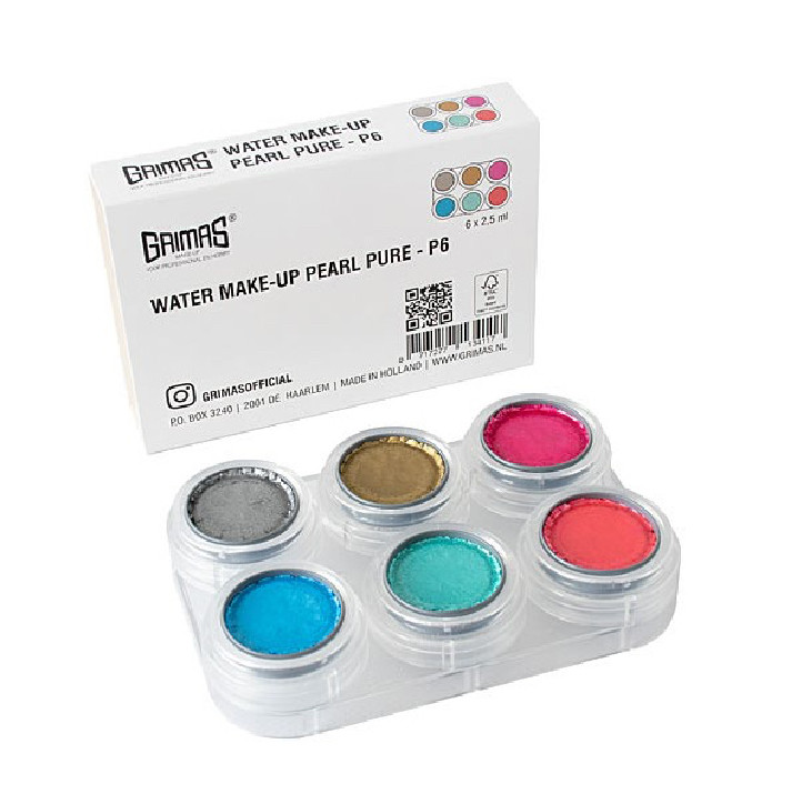 گریماس واتر میکاپ مروارید یک آرایش براق بدون عطر و گلوتن است. رنگ های آرایش گریماس را می توان با یکدیگر مخلوط کرد. می توان از آرایش گریماس روی آن استفاده کرد: غشاهای مخاطی و اطراف چشم و مطابق با قوانین لوازم آرایشی اروپایی است. این پالت شامل رنگ های 701، 702، 731، 742، 752 و 753 می باشد.